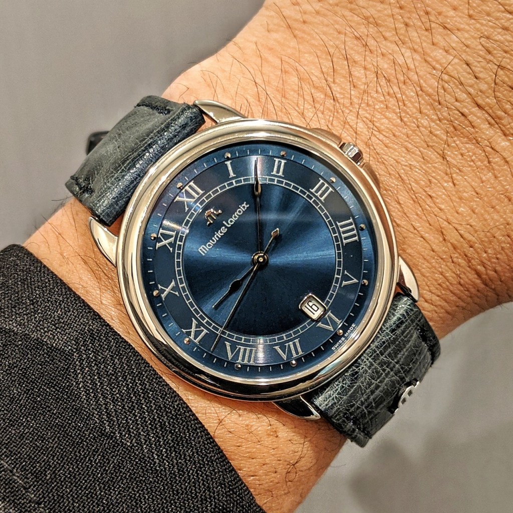 モーリス・ラクロアの伝統的なラインという位置づけで展開されているそうですが、このクラシカルでモダンなフォルムが特徴なモデルです。クラシカルなデザインはどんな場所でも使用することができ、時代の波に影響されることのなく永く付き合うことのできる一本ではないでしょうか。今もなお人気のモデルです。