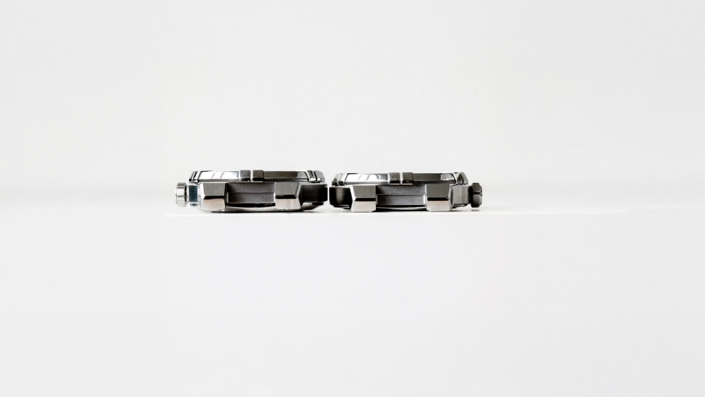 新たな手巻きムーブメントによって、ケースは1mm薄くなりました。(「アイコン オートマティック」では11mm〈左〉、今回のモデルは10mm〈右〉)。